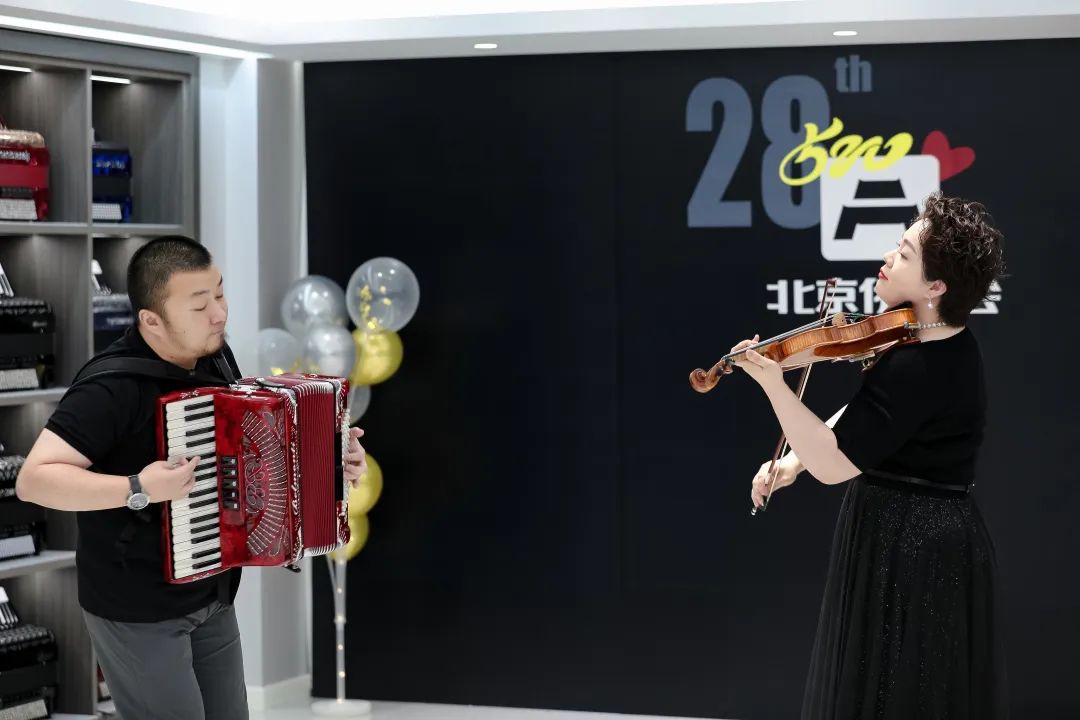 丁鵬先生與夫人北京霍納樂器有限公司總經(jīng)理黃大女士,表演手風(fēng)琴與小提琴二重奏《山楂樹之戀》