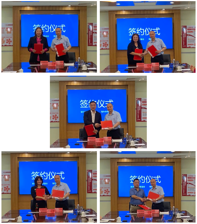 膠州市海外聯(lián)誼會(huì)分別與全德國(guó)華人社團(tuán)聯(lián)合總會(huì)(德國(guó)山東同鄉(xiāng)會(huì))、西班牙中國(guó)文化藝術(shù)交流協(xié)會(huì)、加拿大青島總商會(huì)、美國(guó)中西部對(duì)華商會(huì)、南非山東同鄉(xiāng)聯(lián)誼會(huì)簽署《友好合作備忘錄》。