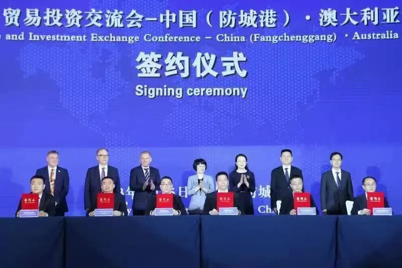 會議進(jìn)行了11個項目的簽約,簽約金額達(dá)103億元,涉及礦石資源、醫(yī)藥、食品、咨詢以及海外倉等領(lǐng)域。同時還舉行廣西柳工機(jī)械股份有限公司澳大利亞子公司成立掛牌儀式、廣西國際商會RCEP(澳大利亞)企業(yè)服務(wù)中心成立揭牌儀式等活動。