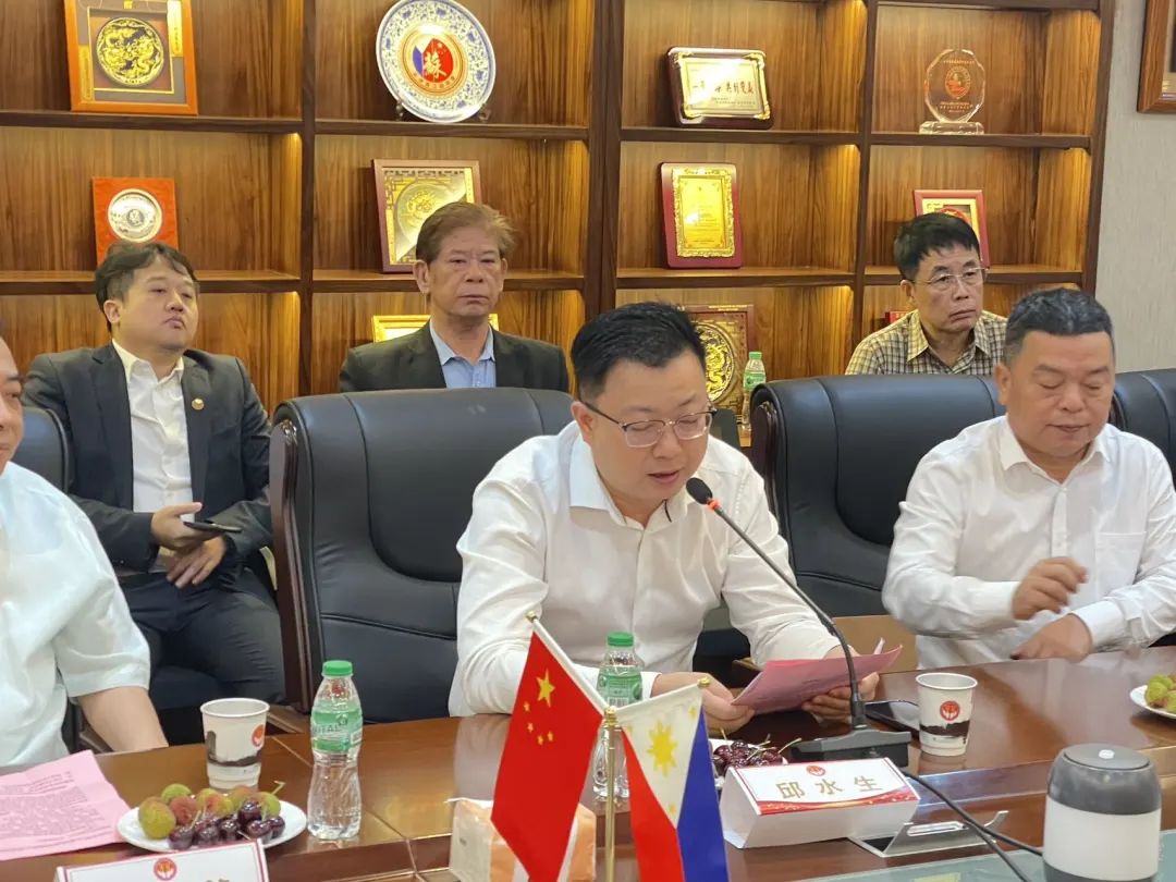為深入開展習(xí)近平新時(shí)代中國特色社會(huì)主義思想主題教育,深化資本合作,促進(jìn)項(xiàng)目對(duì)接。6月7-10日,受福建省僑聯(lián)委托,福建省僑商聯(lián)合會(huì)會(huì)長、香港昊天集團(tuán)董事局主席邱偉銘率團(tuán)一行14人赴菲律賓參加菲華各界聯(lián)合會(huì)成立46周年暨2023年-2025年度委員會(huì)暨第二屆青年委員會(huì)職員就職典禮期間,拜訪菲華各界聯(lián)合會(huì),得到菲華各界聯(lián)合會(huì)主席楊華鴻,名譽(yù)主席蔡志河、許中榮以及候任主席蔡永寧等的熱情接待,雙方共同舉辦了中菲雙園推介交流活動(dòng)并互贈(zèng)紀(jì)念品。