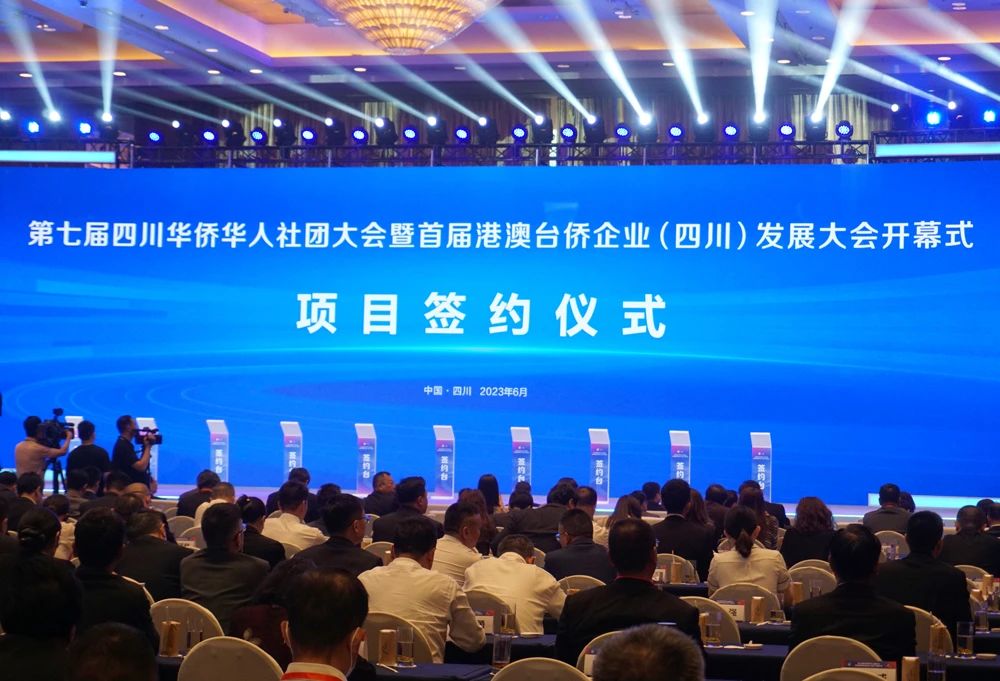 本次大會(huì)聚焦“同心共建現(xiàn)代化 匯僑興川啟新程”主題,邀請(qǐng)了中華海外聯(lián)誼會(huì)副會(huì)長(zhǎng)、美國(guó)美東華人社團(tuán)聯(lián)合總會(huì)主席梁冠軍等多位海外華僑華人代表和港澳臺(tái)僑企業(yè)代表作現(xiàn)場(chǎng)發(fā)言,同步舉辦了首屆港澳臺(tái)僑企業(yè)(四川)發(fā)展大會(huì),共達(dá)成29個(gè)合作項(xiàng)目,總金額達(dá)179.12億元人民幣,并在現(xiàn)場(chǎng)舉行項(xiàng)目簽約儀式。香港四川社團(tuán)總會(huì)、西班牙僑商總會(huì)、四川正大蛋業(yè)有限公司等15家僑團(tuán)、僑企獲頒第三屆“匯僑興川”貢獻(xiàn)獎(jiǎng)。
