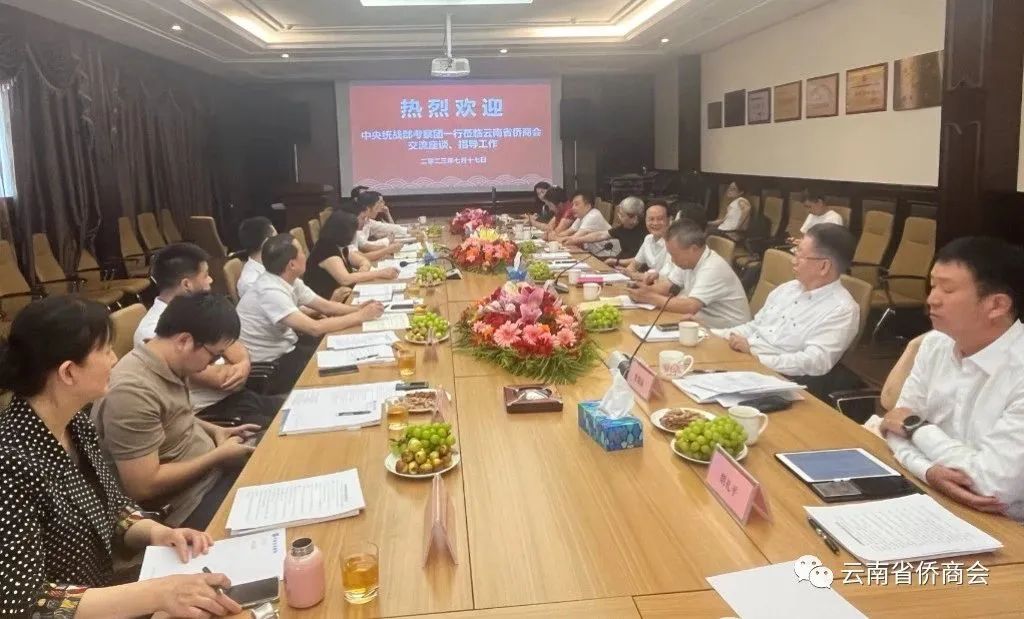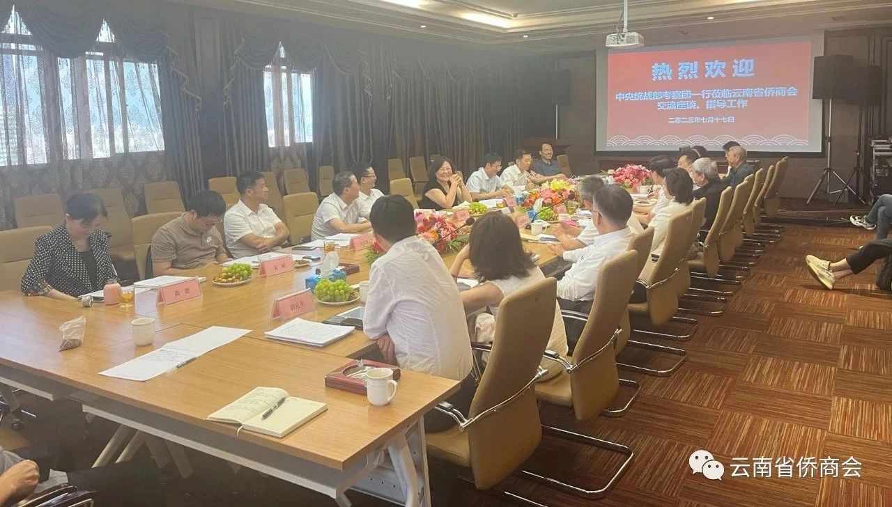 7月17日下午,中央統(tǒng)戰(zhàn)部十局一級巡視員于建明帶領(lǐng)專題調(diào)研組,在云南省委統(tǒng)戰(zhàn)部副部長、云南省僑辦主任何長松的陪同下,蒞臨云南省僑商會調(diào)研指導(dǎo)。來自歐洲、美洲和南亞東南亞部分國家和地區(qū)的僑商代表,與尹元江會長一道,圍繞調(diào)研主題、結(jié)合自身實際進行交流座談。