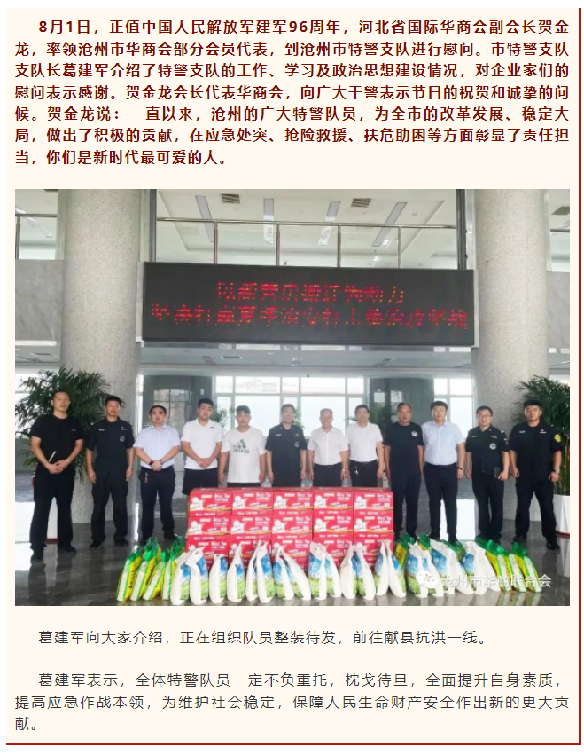 滄州市華商會(huì)組織會(huì)員慰問(wèn)特警支隊(duì)