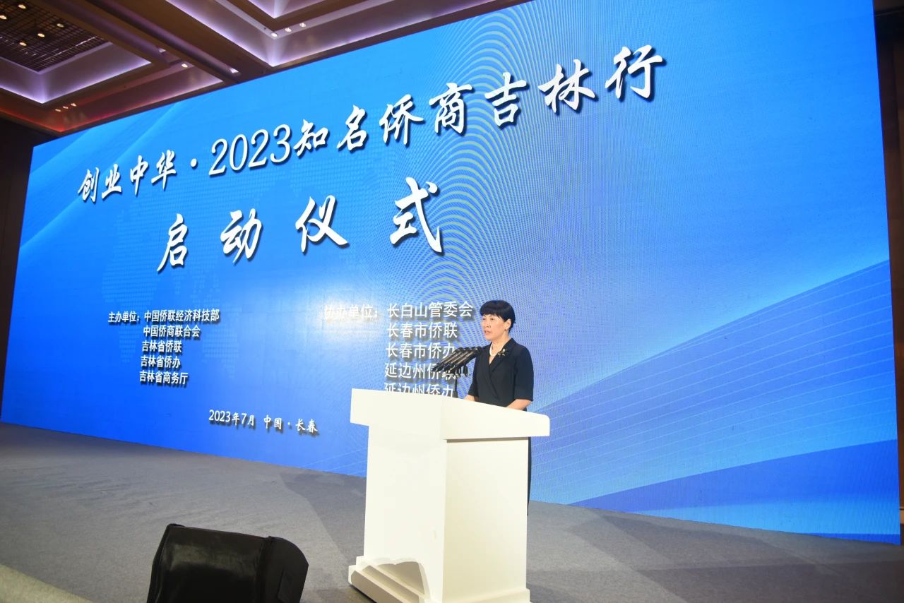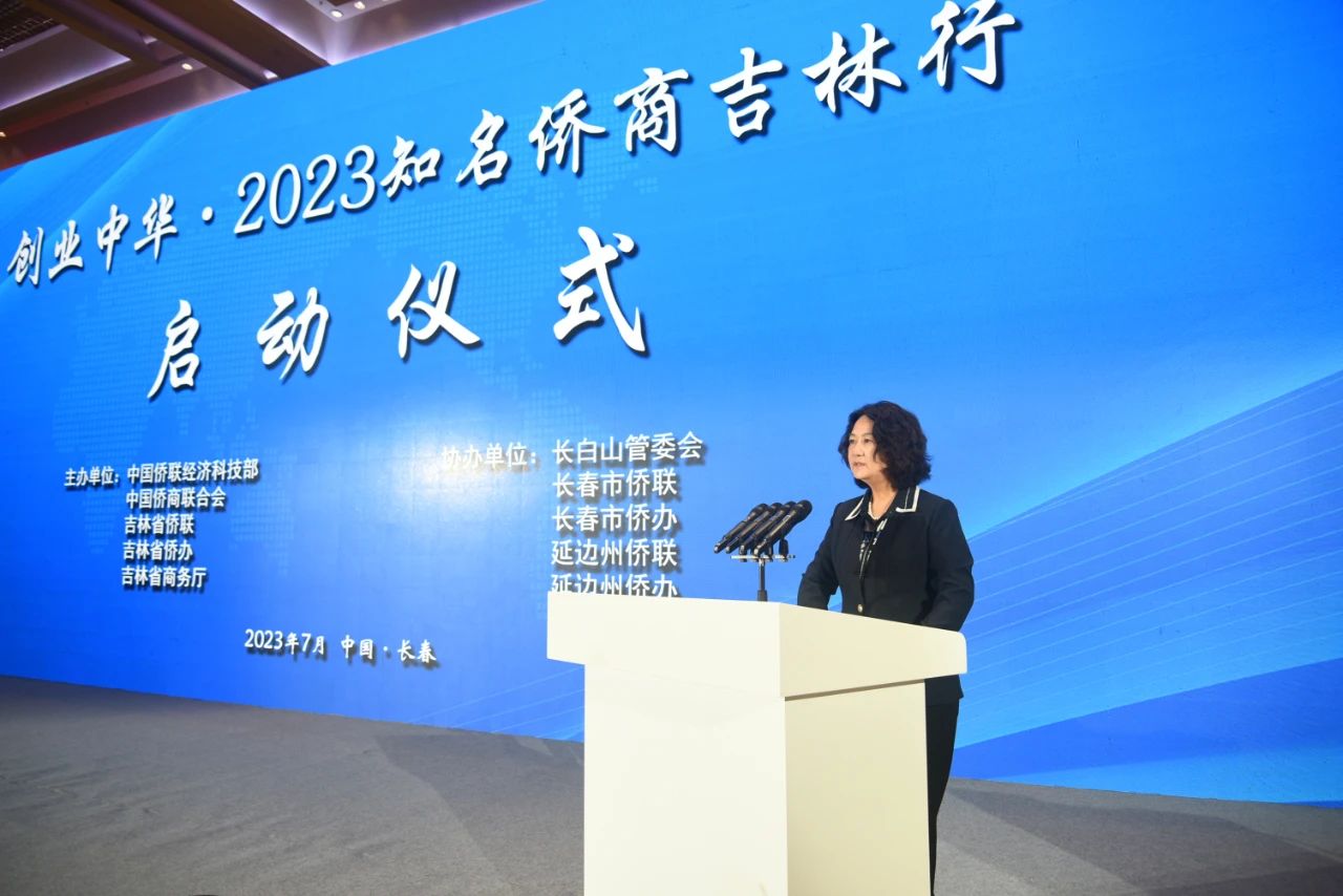 7月26日上午,創(chuàng)業(yè)中華·2023知名僑商吉林行活動啟動儀式在長春市舉行。中國僑聯(lián)副秘書長、經(jīng)濟(jì)科技部部長趙紅英出席啟動儀式并致辭,她代表中國僑聯(lián)和萬立駿主席對活動的舉辦表示祝賀,向吉林省委、省政府對僑聯(lián)工作的支持表示感謝。她在致辭中提出三點建議,一是發(fā)揮僑的作用,在推動我國更高水平對外開放中展現(xiàn)新作為,積極為國內(nèi)外企業(yè)交流合作牽線搭橋,助力推動建設(shè)更高水平開放型經(jīng)濟(jì)新格局。二是激發(fā)品牌效應(yīng),在助力推進(jìn)中國式現(xiàn)代化進(jìn)程中取得新成就。僑聯(lián)和僑商組織要不斷完善體系建設(shè),提升服務(wù)能力和水平,當(dāng)好僑胞“貼心人”和僑務(wù)工作“實干家”。三是深度了解吉林,在服務(wù)地方經(jīng)濟(jì)建設(shè)中實現(xiàn)事業(yè)新發(fā)展,為助力吉林全面實施“一主六雙”高質(zhì)量發(fā)展戰(zhàn)略作出僑界貢獻(xiàn)。