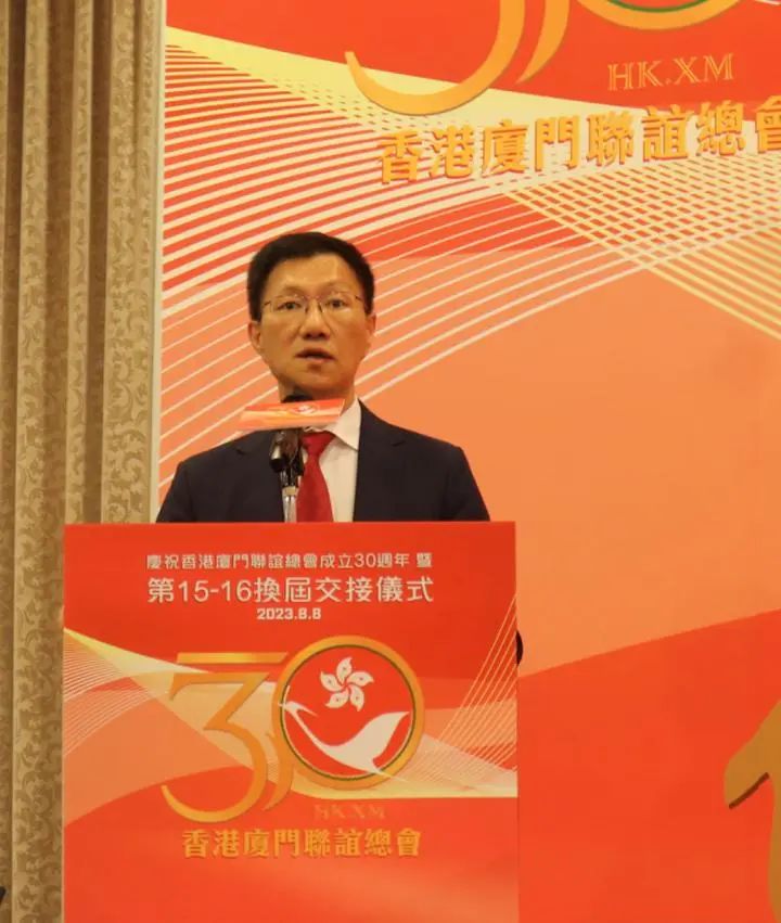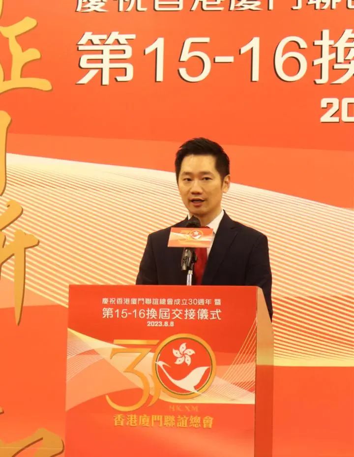 第十六屆理事長(zhǎng)李冠華代表香港廈門聯(lián)誼總會(huì)新一屆理監(jiān)事會(huì)致辭,衷心感謝參與交接活動(dòng)的賓主。他表示,在廈聯(lián)會(huì)成立30周年之際榮幸擔(dān)任第十六屆理事長(zhǎng),深感使命光榮,任重道遠(yuǎn)。新一屆理監(jiān)事將一如既往支持特區(qū)政府依法施政,為完善地區(qū)治理,為維護(hù)香港繁榮穩(wěn)定貢獻(xiàn)力量;我們將深度參與地區(qū)關(guān)愛(ài),服務(wù)會(huì)員社群,助力香港全面激發(fā)興的動(dòng)能;將堅(jiān)守「增進(jìn)鄉(xiāng)情友誼,促進(jìn)家鄉(xiāng)建設(shè)」的宗旨,深化港廈經(jīng)貿(mào)交流合作,增進(jìn)港廈青年往來(lái);將支持青年成長(zhǎng)、發(fā)揮婦女作用,建設(shè)生機(jī)勃勃、如沐春風(fēng)的會(huì)員之家;將更加主動(dòng)融入國(guó)家發(fā)展大局,為中華民族偉大復(fù)興作出新的貢獻(xiàn)。