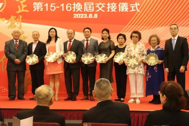 在與會(huì)賓主見(jiàn)證下,第十五屆理事長(zhǎng)楊毅融與第十六屆理事長(zhǎng)李冠華交接印鑒,并與主禮嘉賓王雪敏、國(guó)桂榮、 林廣兆、林樹(shù)哲、余學(xué)杰、楊成偉、施清流、楊利玉及十六屆監(jiān)事長(zhǎng)洪頂超合影見(jiàn)證。