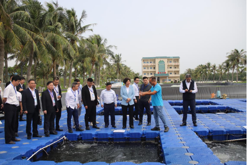 ▲廣東僑商代表團(tuán)一行在國(guó)家863計(jì)劃項(xiàng)目海水養(yǎng)殖種子工程南方基地考察交流