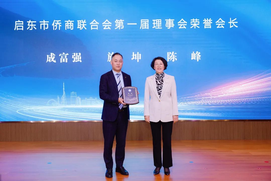 會上,蔡宏偉和彭曉紅共同為啟東市僑商聯(lián)合會揭牌。會議選舉產(chǎn)生了啟東市僑商聯(lián)合會第一屆理事會和領(lǐng)導(dǎo)班子,龍信晉合置業(yè)(啟東)有限公司副總經(jīng)理陳浩當選為首任會長。聘請阿聯(lián)酋中國和平統(tǒng)一促進會執(zhí)行會長、阿聯(lián)酋上??偵虝咄l(xiāng)會會長、中國僑聯(lián)第十一屆委員會海外委員、阿聯(lián)酋富春集團董事長成富強,緬甸中國紡織服裝協(xié)會會長、緬甸騰馬集團董事長施坤,香港中華工商總會執(zhí)行主席、香港啟東同鄉(xiāng)會會長、港亞產(chǎn)業(yè)控股集團董事長陳峰為榮譽會長。啟東市歐美同學會會長、南通布洛思生物科技有限公司總經(jīng)理趙波濤代表統(tǒng)戰(zhàn)社團到會祝賀。