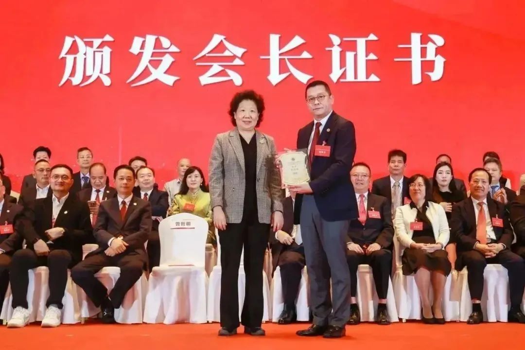 廣東省政協(xié)副主席李心為第五屆理事會(huì)會(huì)長曾智明頒發(fā)證書