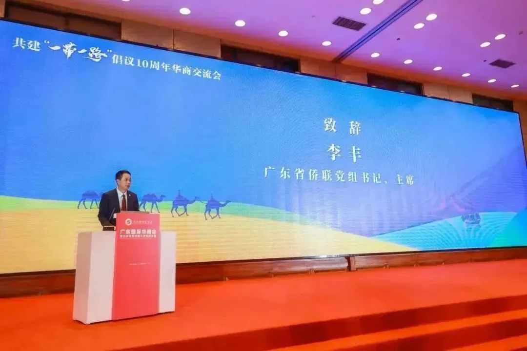 大會(huì)期間,舉辦共建“一帶一路”倡議十周年華商交流會(huì)。李豐在致詞中對(duì)廣東國際華商會(huì)第五次會(huì)員代表大會(huì)成功舉辦、曾智明當(dāng)選第五屆會(huì)長表示祝賀,向華商會(huì)第三、四屆會(huì)長郭澤偉所作貢獻(xiàn)表示感謝。李豐表示,今年是習(xí)近平總書記提出共建“一帶一路”倡議10周年,10年來“一帶一路”合作從亞歐大陸延伸到非洲和拉美150多個(gè)國家和地區(qū),廣大華商積極參與其中,共同推動(dòng)“一帶一路”國際合作取得豐碩成果。希望華商朋友牢牢把握共建“一帶一路”發(fā)展機(jī)遇,把自身企業(yè)、事業(yè)做大做強(qiáng);希望華商朋友積極發(fā)揮融通中外的優(yōu)勢,做促進(jìn)中外友好的民間使者,在共建“一帶一路”中講好中國故事、廣東故事;希望廣東國際華商會(huì)在曾智明會(huì)長的帶領(lǐng)下,積極“走出去、請(qǐng)進(jìn)來”,與更多“一帶一路”沿線國家和地區(qū)開展合作交流。
