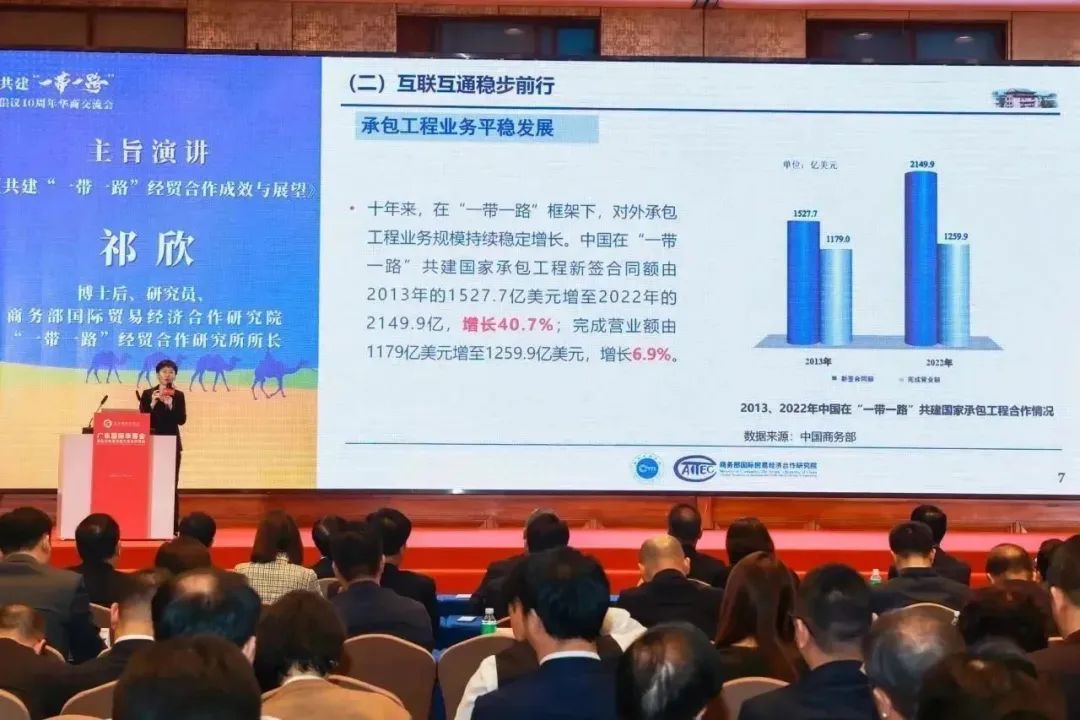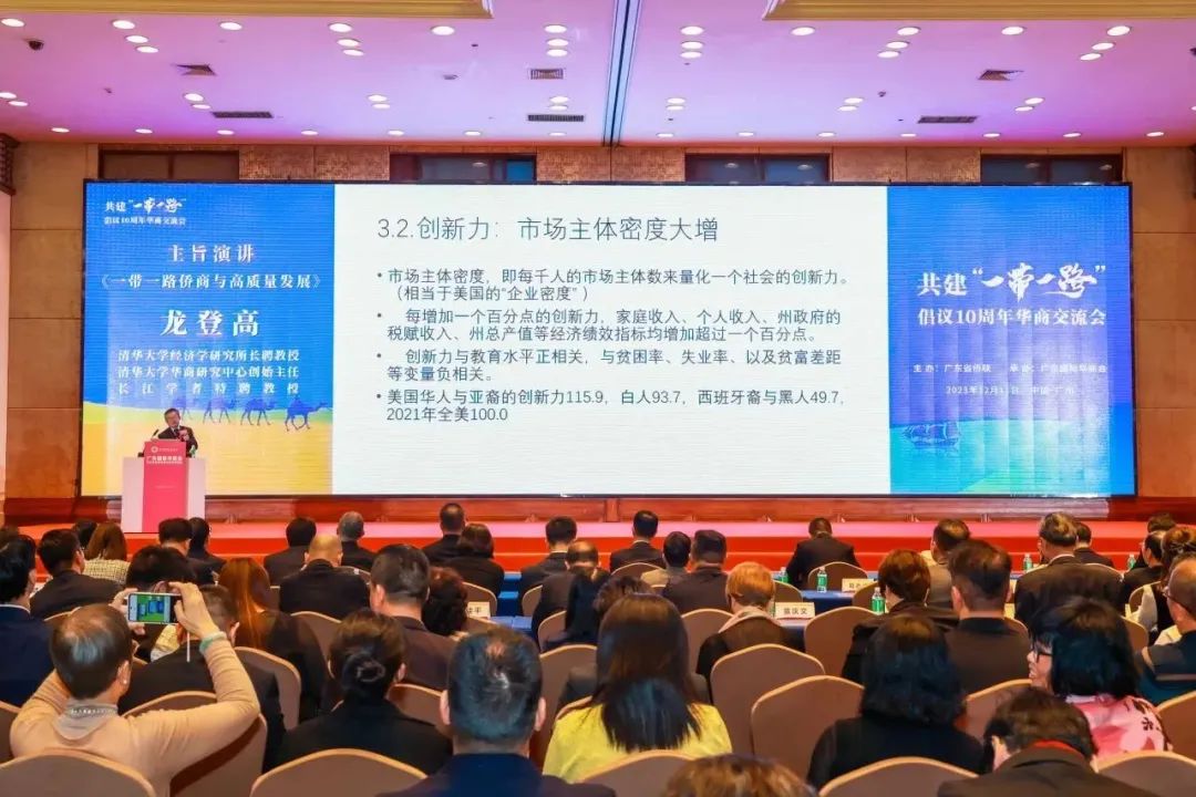 共建“一帶一路”倡議十周年華商交流會(huì)上,清華大學(xué)經(jīng)濟(jì)學(xué)研究所長聘教授、清華大學(xué)華商研究中心創(chuàng)始主任龍登高,中國商務(wù)部國際貿(mào)易經(jīng)濟(jì)合作研究院“一帶一路”經(jīng)貿(mào)合作研究所所長祁欣發(fā)表主旨演講。非洲粵商總會(huì)執(zhí)行會(huì)長侯建雄、阿聯(lián)酋廣東商會(huì)暨同鄉(xiāng)會(huì)會(huì)長張欽偉、廣悅律師事務(wù)所董事局榮譽(yù)主席王敬、中咨海外咨詢有限公司大灣區(qū)事業(yè)部副總經(jīng)理王先哲分別作了交流發(fā)言。