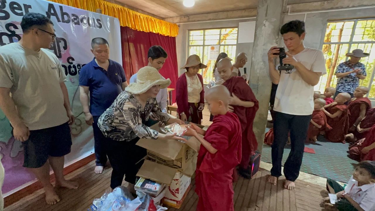 在緬甸蒲甘,代表團去了當(dāng)?shù)匾凰聝涸?。一位寺廟和尚收養(yǎng)了很多孤兒和窮人家的孩子,教他們讀書。在現(xiàn)場,除了捐贈了提前準(zhǔn)備的善款和文具,每個人又都不約而同地做了捐贈。