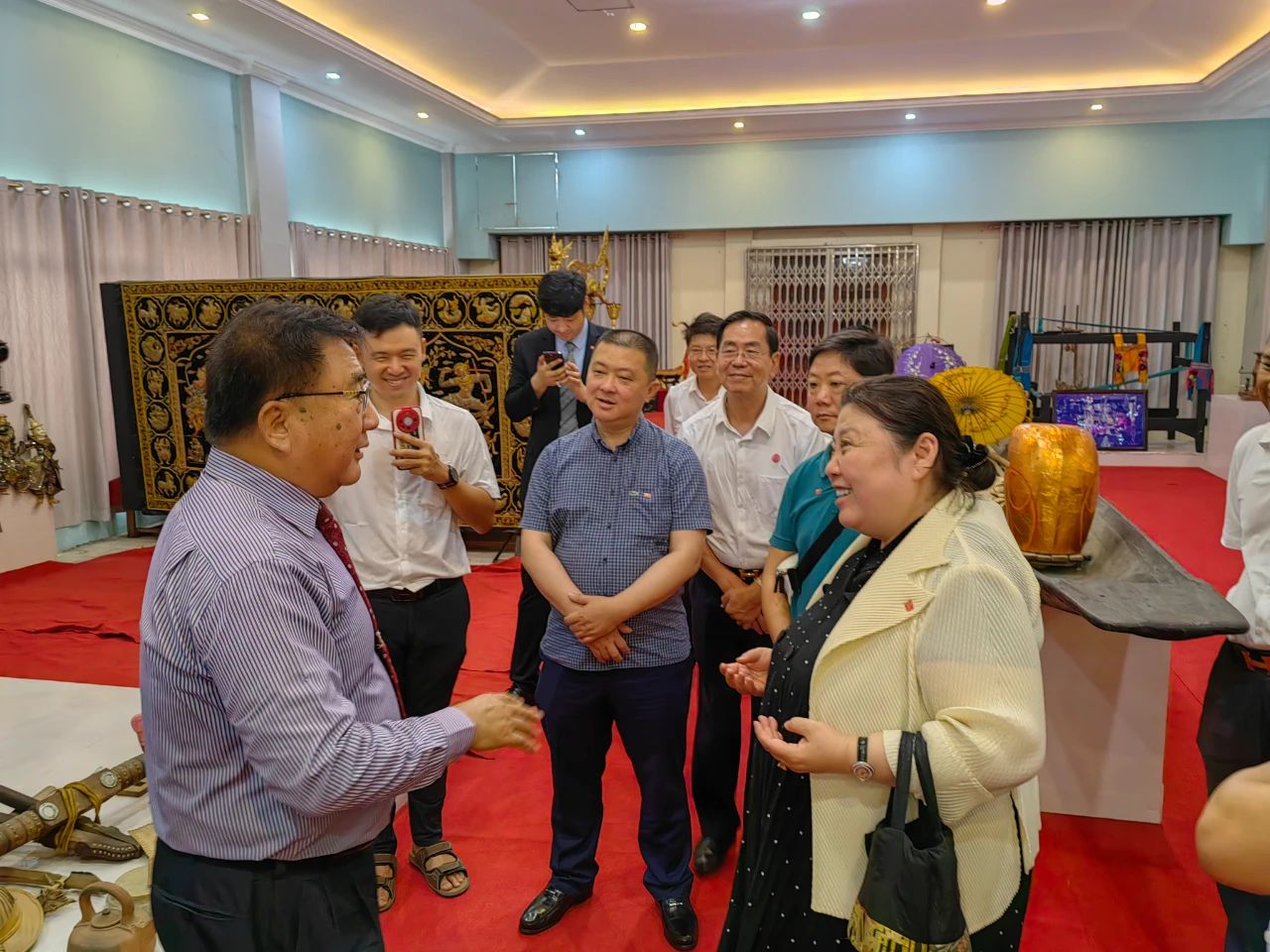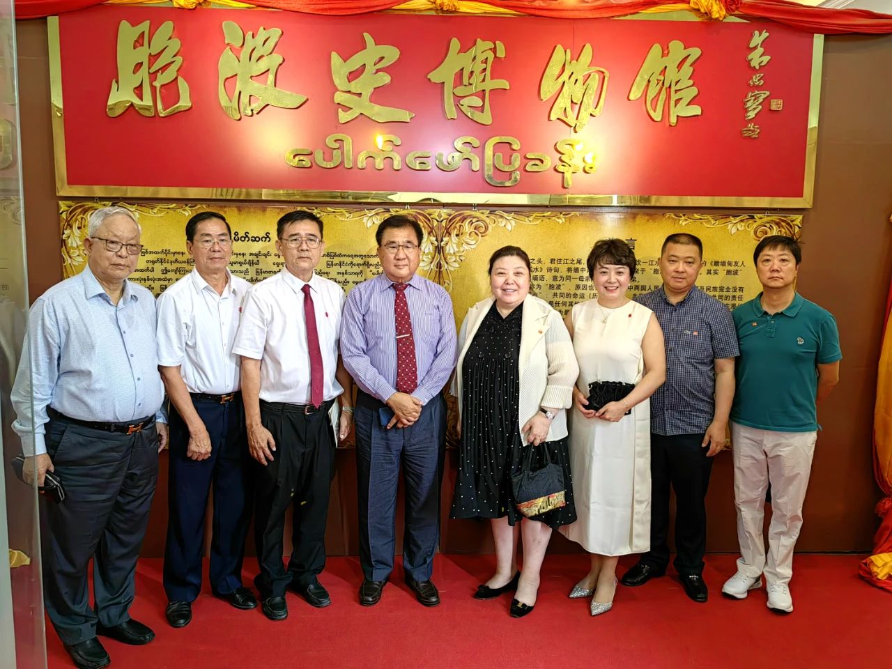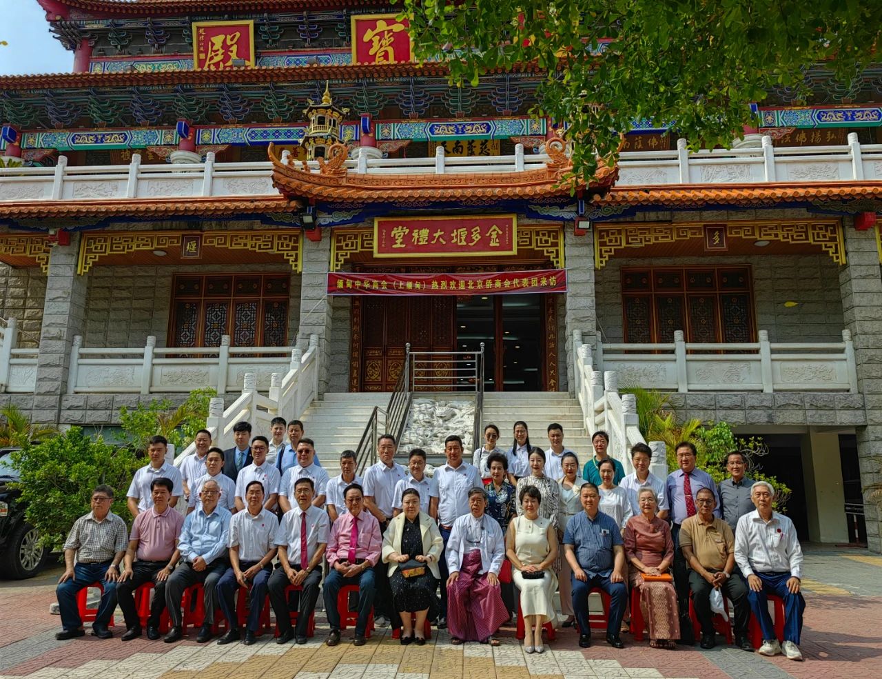 5月20日,代表團一行來到金多堰大雄寶殿。受到了金多堰大家庭(金多堰慈善總會、上緬甸中華商會、曼德勒省緬中友協(xié)、曼德勒華助中心、金多堰婦女慈善會)僑領(lǐng)們熱烈歡迎。雙方就今后共同促進推廣中緬文化旅游事業(yè),開展兩家商會之間的緊密合作事宜,加強中緬胞波友誼進行了坦誠友好的交流?;ベ浂Y品后,代表團一行還參觀了《胞波史博物館》。當(dāng)天恰逢北京僑商會29周年生日,僑領(lǐng)們在現(xiàn)場為北京僑商會送上生日祝福。