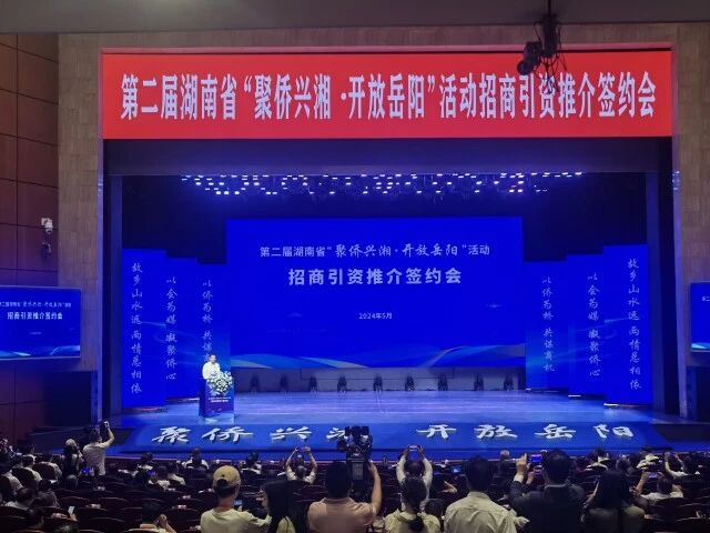 (5月30日上午,“聚僑興湘·開放岳陽(yáng)”活動(dòng)招商引資推介簽約會(huì)現(xiàn)場(chǎng)。)