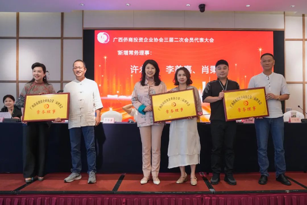 會議由廣西僑商會秘書長蔣文釗主持。廣西僑商會常務(wù)副會長楊真標(biāo)作2023年廣西僑商會工作報(bào)告,圍繞凝聚僑助高質(zhì)量發(fā)展共識、開展桂籍僑商以僑引商活動、構(gòu)建聯(lián)誼交流新平臺等方面內(nèi)容進(jìn)行匯報(bào)。大會相繼審議通過了2023年廣西僑商會財(cái)務(wù)報(bào)告和《關(guān)于增補(bǔ)副會長、常務(wù)理事和理事的提議》,并為會議審議通過新增補(bǔ)的副會長、常務(wù)理事、理事授牌。會議還投票通過廣西僑商會企業(yè)名稱變更、法人變更、上級主管單位變更等事宜。