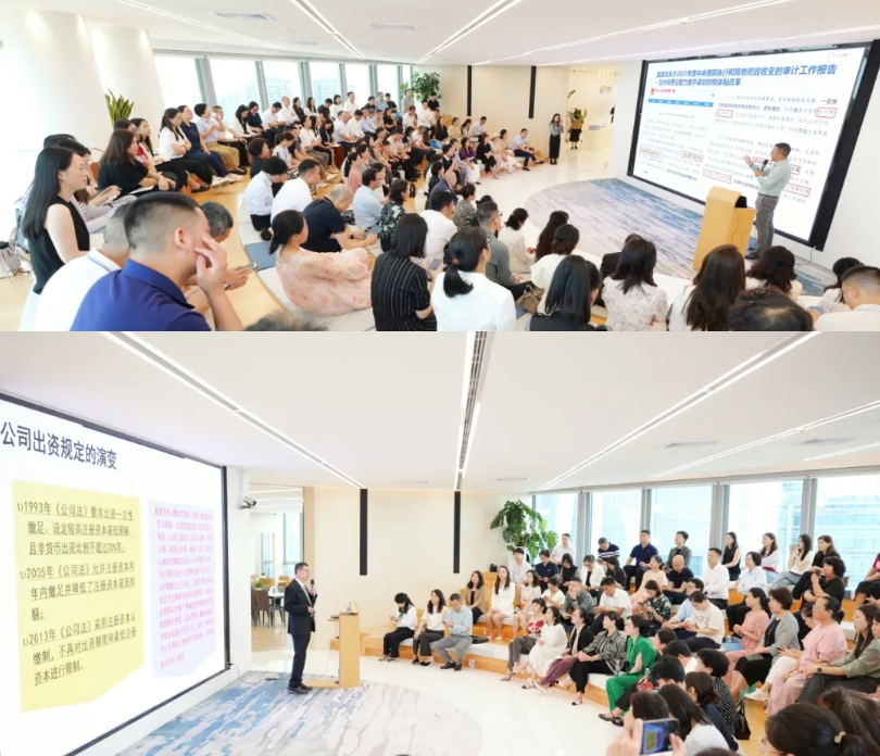畢馬威中國稅務(wù)總監(jiān)、中國注冊稅務(wù)師朱栗寧以《走近稅務(wù)稽查,排除涉稅風(fēng)險》為主題,給大家梳理講解了企業(yè)增值稅、企業(yè)所得稅、個人所得稅等稽查政策風(fēng)險點(diǎn),并給大家提出了稅務(wù)管理的建議;華商林李黎(前海)聯(lián)營律師事務(wù)主任闕凌云以《新《公司法》下的出資風(fēng)險和應(yīng)對》為題,介紹了《公司法》修訂的背景,并從公司出資規(guī)定的演變、新《公司法》股東出資責(zé)任變化、存量公司應(yīng)如何應(yīng)對等三個方面為大家做新《公司法》解讀,特別對新《公司法》針對實(shí)踐中認(rèn)繳登記制出資案件激增、天價出資、期限過長等問題,重點(diǎn)對有限責(zé)任公司認(rèn)繳登記制進(jìn)行了完善,對股東出資責(zé)任、董事催繳義務(wù)、股東失權(quán)制度及出資不足違約責(zé)任等做出重大調(diào)整等核心內(nèi)容進(jìn)行了解讀,對公司法施行后,公司相關(guān)投資主體應(yīng)首要關(guān)注股東責(zé)任,識別公司出資風(fēng)險,適應(yīng)更高的合規(guī)要求等問題做了提示。