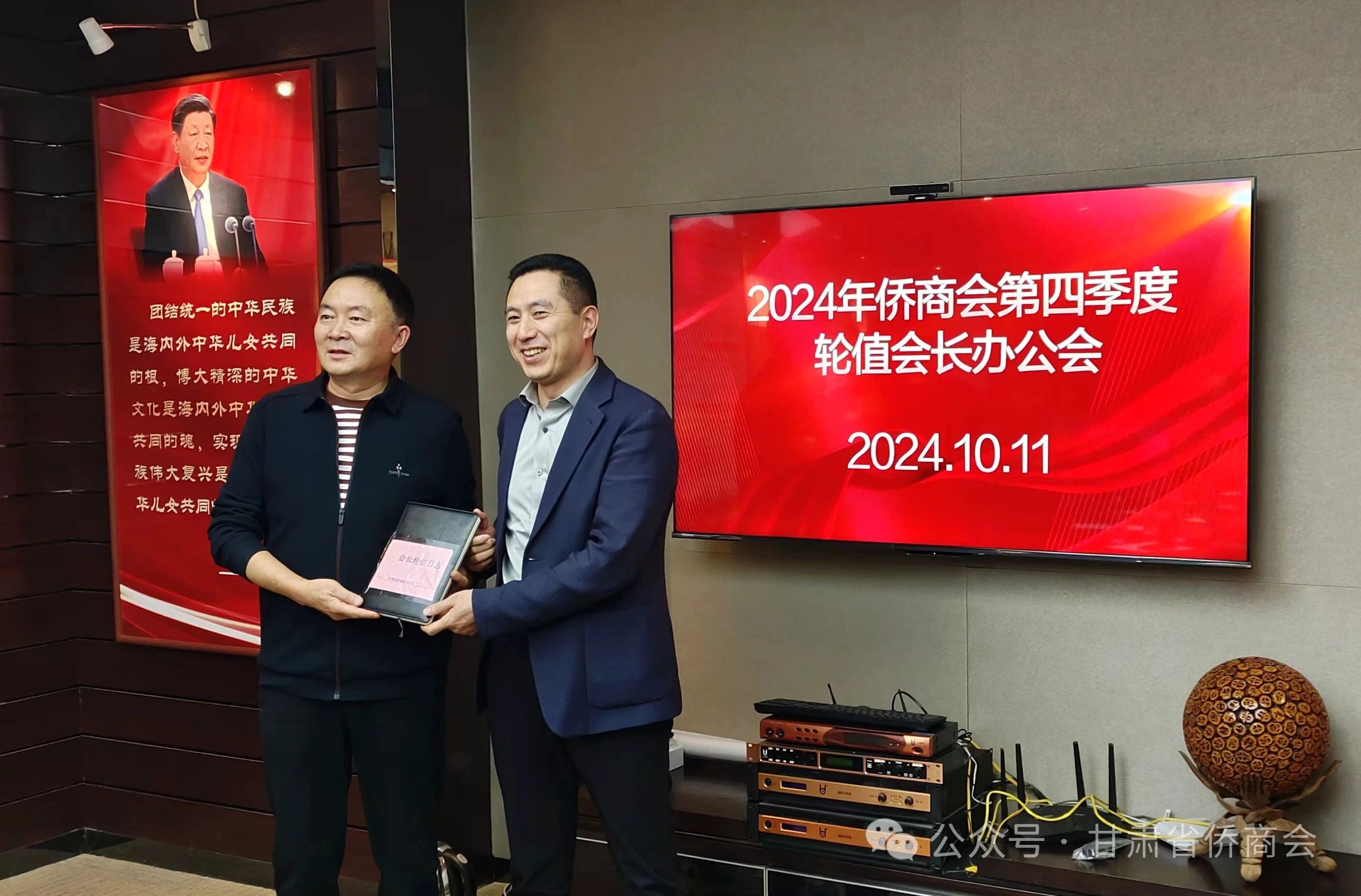10月11日下午,甘肅省僑商聯(lián)合會(huì)召開2024年第四季度輪值會(huì)長(zhǎng)辦公會(huì),完成輪值會(huì)長(zhǎng)的交接工作,總結(jié)梳理第三季度工作,并重點(diǎn)就第四季度的工作進(jìn)行了商討部署。