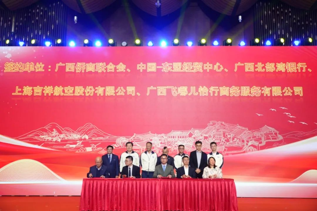 為進一步擴大廣西僑商聯(lián)合會服務(wù)會員的能力,在慶典晚宴中,廣西僑商聯(lián)合會與相關(guān)戰(zhàn)略合作單位代表舉行了簽約儀式。