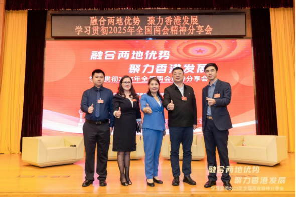3月27日下午,由浙江省香港商會、深圳大學(xué)港澳臺學(xué)生聯(lián)誼會共同主辦的“融合兩地優(yōu)勢 聚力香港發(fā)展”——學(xué)習(xí)貫徹2025年全國兩會精神分享會在深圳紫荊山莊舉辦。中央政府駐港聯(lián)絡(luò)辦深圳聯(lián)絡(luò)部副主任伍俊斌出席活動并致辭,我會副會長胡文貴、何碧芳、秘書長邱水生等代表出席會議,以及來自深圳市、區(qū)相關(guān)政府部門代表、不同省、市駐粵、駐深辦事處代表、在深社團(tuán)及機(jī)構(gòu)代表等。