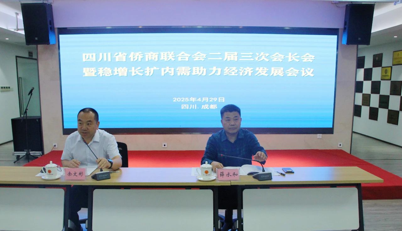4月29日,四川省僑商聯(lián)合會(huì)召開二屆三次會(huì)長(zhǎng)會(huì)暨穩(wěn)增長(zhǎng)擴(kuò)內(nèi)需助力經(jīng)濟(jì)發(fā)展會(huì)議。省僑聯(lián)黨組成員、專職副主席黃灝,省僑聯(lián)副主席、省僑商會(huì)會(huì)長(zhǎng)薛水和出席會(huì)議并講話。巴中市政協(xié)副主席馬婧作投資推介,常務(wù)副會(huì)長(zhǎng)方光華、蒲遙、李曉蘭、曾大章,副會(huì)長(zhǎng)涂艾因、嚴(yán)鵬、熊正寬、黃志堅(jiān)、鄭強(qiáng)、曾愛(ài)國(guó)、薛燕敏、曾偉、伍涌、池金書、殷勝群、鐘沐寰、高山越、孫婍瑄、許俊、吳博燊,副監(jiān)事長(zhǎng)林明煊,以及部分副會(huì)長(zhǎng)單位代表,省僑聯(lián)機(jī)關(guān)相關(guān)部門負(fù)責(zé)人,巴中市僑聯(lián)主席黃惠、巴中市僑商會(huì)、市人民政府駐成都辦事處相關(guān)負(fù)責(zé)同志,副會(huì)長(zhǎng)單位代表、專家學(xué)者等共計(jì)70余人出席會(huì)議。省僑聯(lián)機(jī)關(guān)黨委書記、二級(jí)巡視員、省僑商會(huì)副會(huì)長(zhǎng)兼秘書長(zhǎng)余文彬主持會(huì)議。