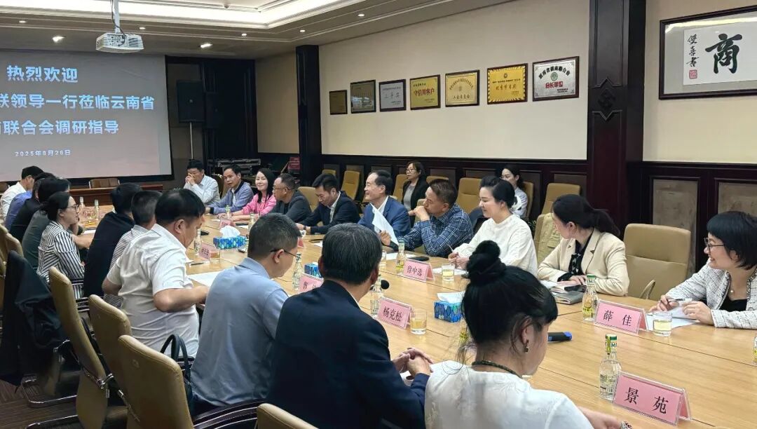 2025年8月26日下午,云南省僑聯(lián)黨組書記、主席候選人何長松,率僑聯(lián)各部門負責人一行蒞臨僑商聯(lián)合會工作調研,重點就如何凝智聚力、服務僑企發(fā)展等話題交流意見。云南省僑聯(lián)兼職副主席、云南省僑商聯(lián)合會會長、天城集團董事長尹元江,正大集團云貴區(qū)副董事長陳浩、云南區(qū)副總裁張宏波,昆明一頂旅游產業(yè)集團總裁李建輝,浩宏國際物流產業(yè)園董事長李天明,云南華爾貝光電技術有限公司董事長徐中選,云南富洋(國際)留學因私出入境有限公司董事長吳莉蓉,云南榕潤供應鏈管理有限公司董事長林福,云南天保樺生物科技有限公司副董事長薛佳,東匯文化云南股份有限公司總經理王振宇,以及云南省北京商會李家寧會長助理張大軍、云南省文化藝術交流協(xié)會會長張賓、書記景苑等15位在昆僑企與合作單位應邀參會。