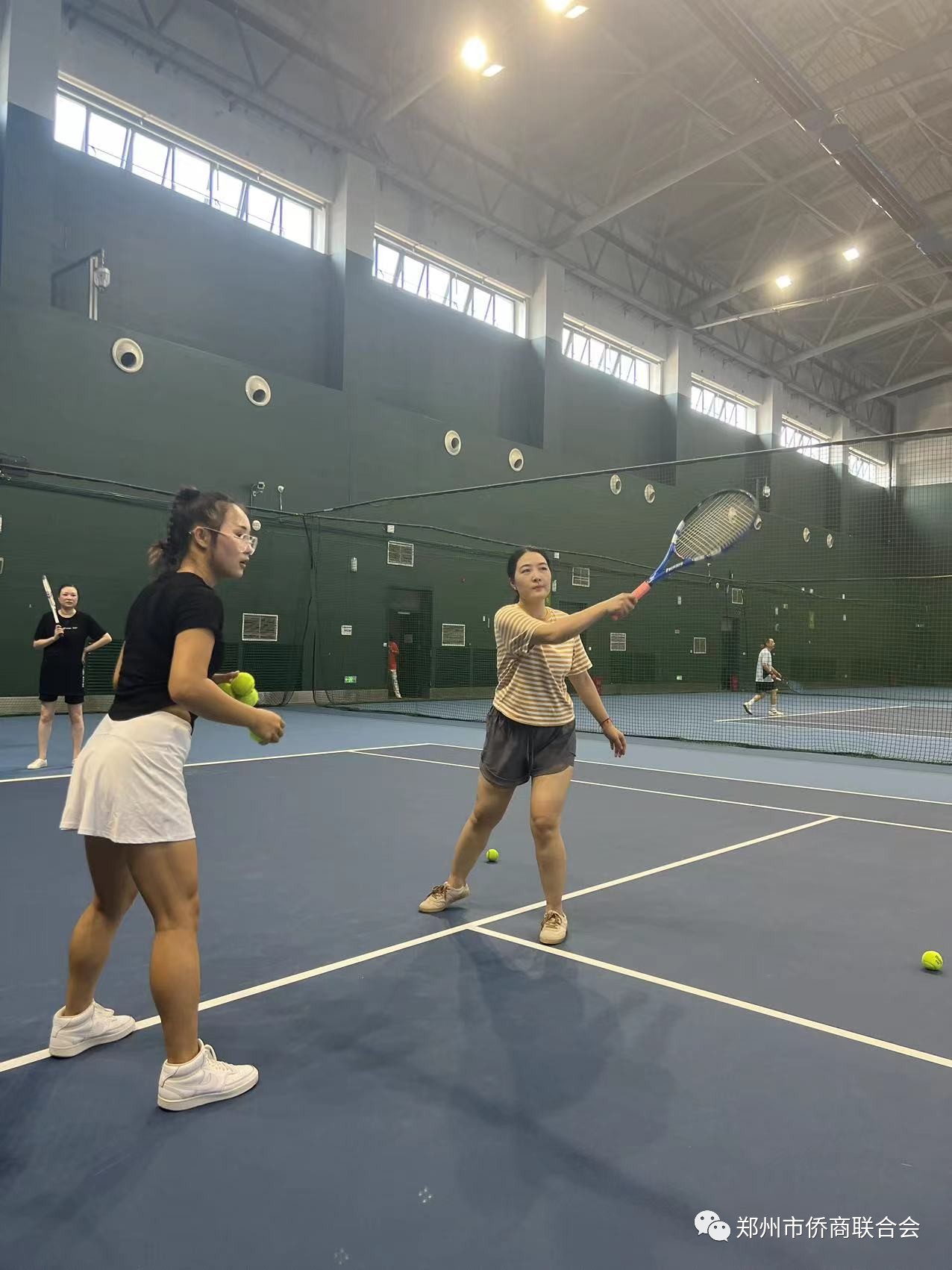 為加強(qiáng)會(huì)員之間的交流合作,豐富會(huì)員的文體生活,8月24日下午,鄭州市僑商會(huì)副會(huì)長蔣雪在中原網(wǎng)球中心,組織會(huì)員開展“以球會(huì)友 陽光運(yùn)動(dòng)”網(wǎng)球體驗(yàn)活動(dòng)。輪值會(huì)長黨秀浩、秘書長李文光、理事張培強(qiáng)、張子涵等會(huì)員參加了活動(dòng)。