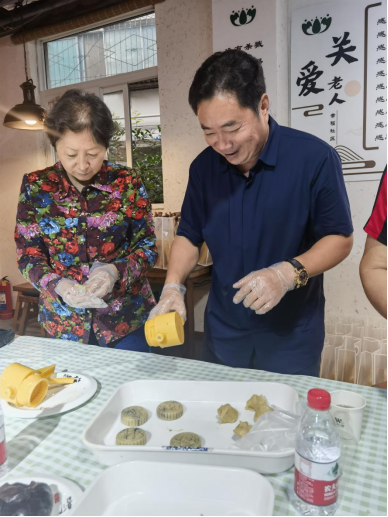 為進一步抒發(fā)愛國情懷,感受中國傳統(tǒng)文化,增進會員之間感情,市僑商會精心安排現(xiàn)場來賓共同手工制作中秋月餅。迎春敬老家園的義工提前準備了面皮和餡料,大家圍在桌旁,一起揉皮,加餡料、包月餅、放入磨具,按壓成型,烤箱烘焙。20分鐘后,一個個帶著愛心和溫度的月餅出爐,大家細細品嘗著自己動手做的月餅,興奮又滿足。