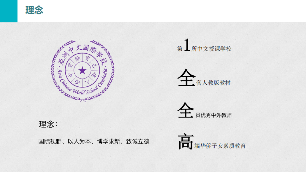 亞洲中文國際學(xué)校,是由華人創(chuàng)辦的柬埔寨第一所使用中英文教材、使用中英文授課的國際學(xué)校。學(xué)校成立于2020年,結(jié)合開辦國際學(xué)校并提供全方位教育服務(wù)的經(jīng)驗(yàn),創(chuàng)辦了以招收港澳臺僑生為特色的國際教育體系。