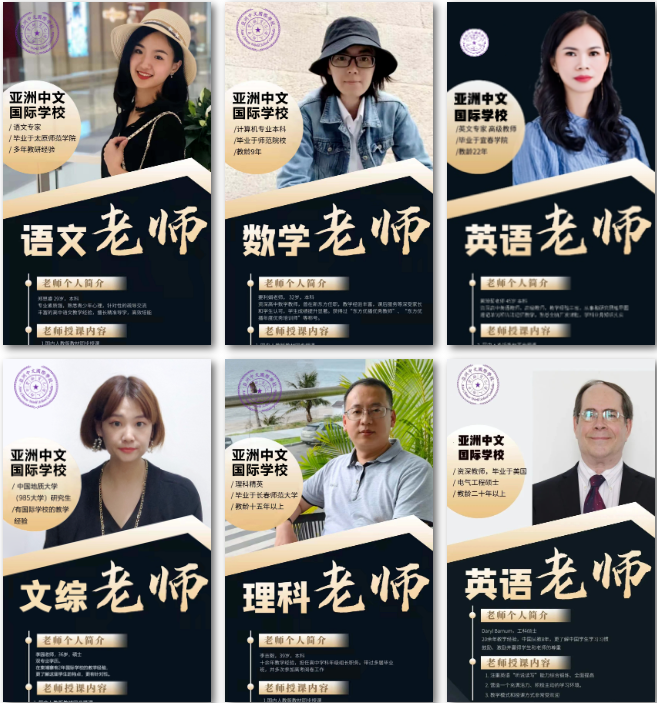 亞洲中文國際學(xué)校擁有一支實(shí)力雄厚的高水平師資隊(duì)伍,是學(xué)校培養(yǎng)優(yōu)秀人才的主力軍,也是學(xué)校教學(xué)工作、科學(xué)研究與文化傳承創(chuàng)新的中堅(jiān)力量。