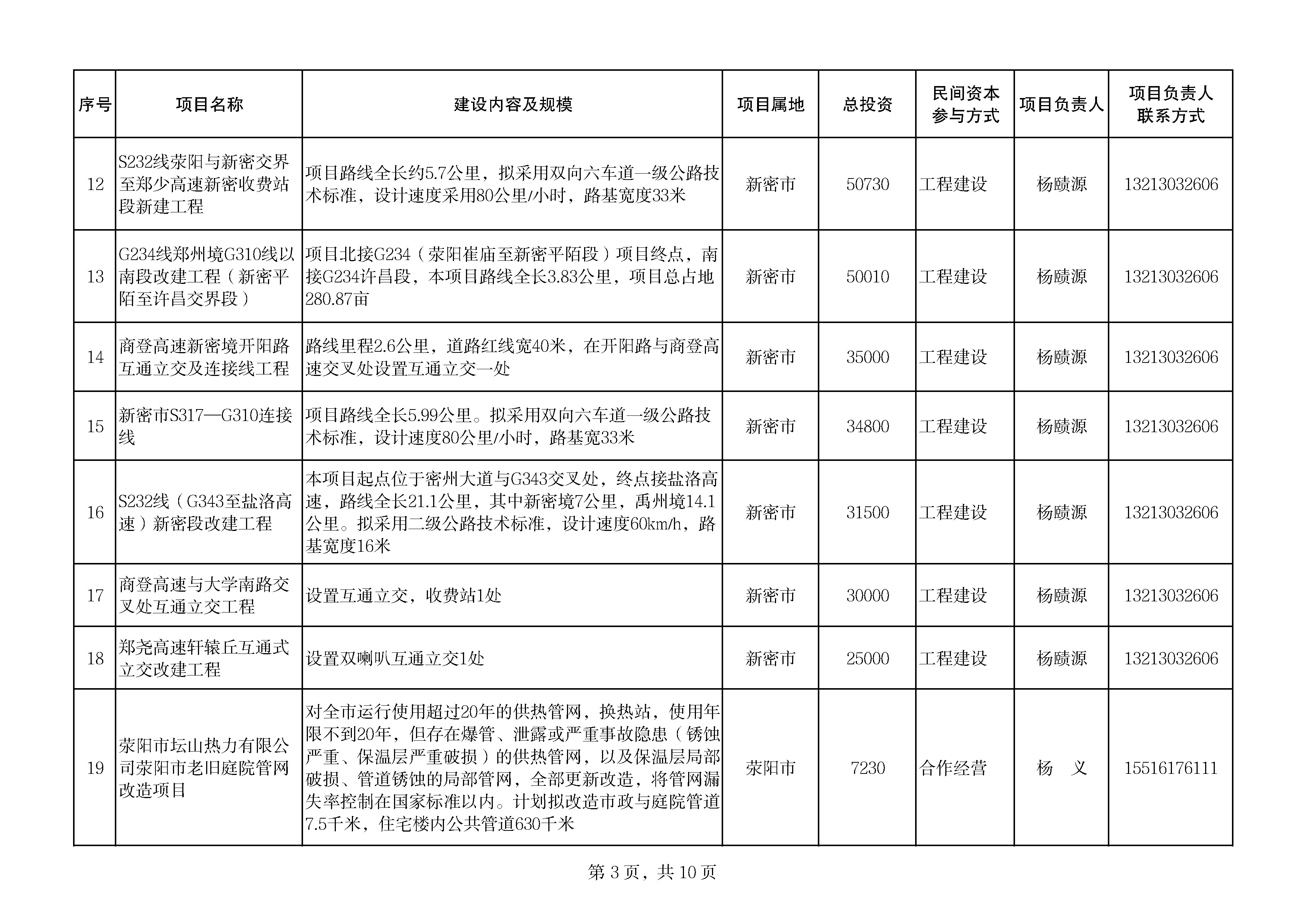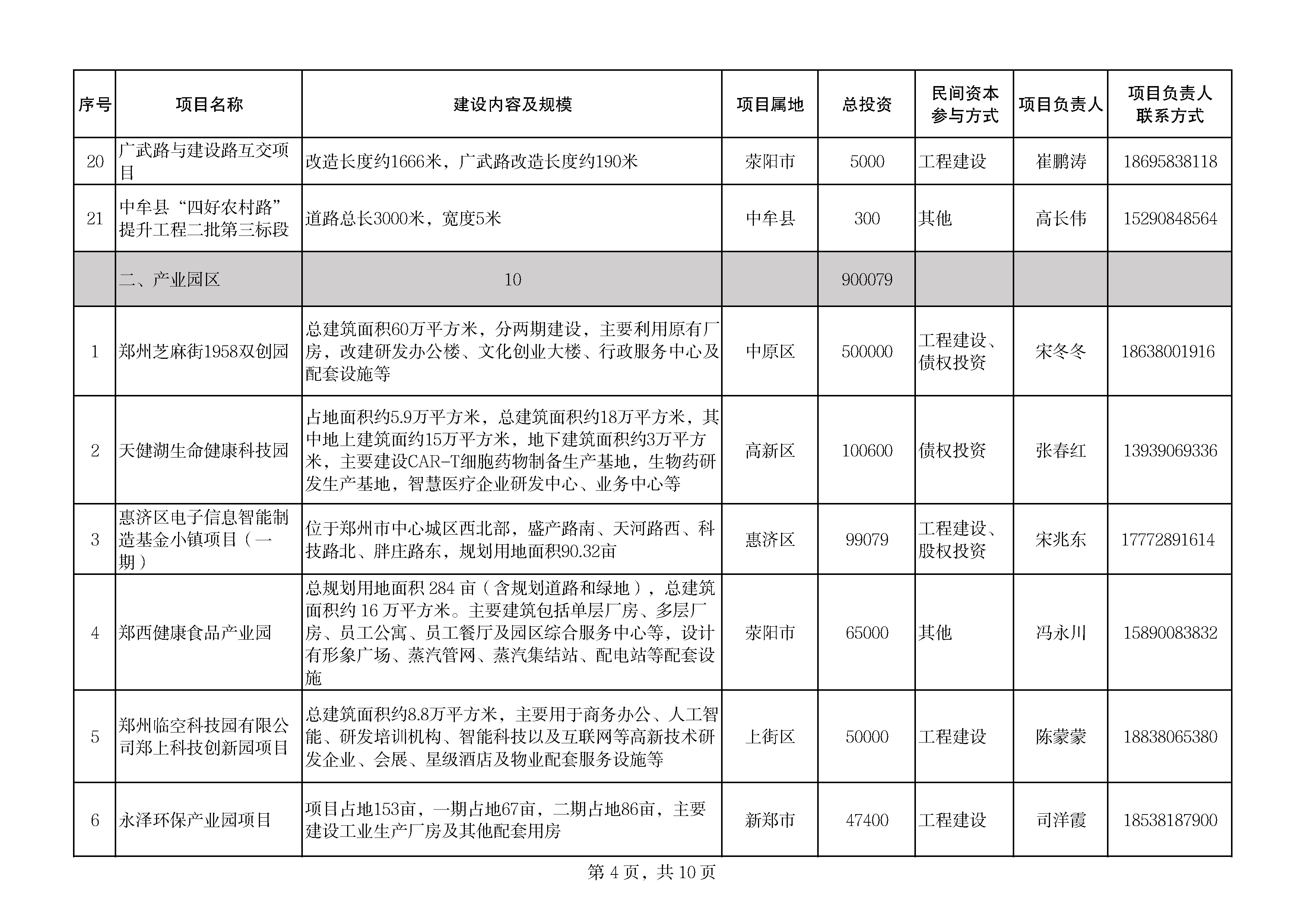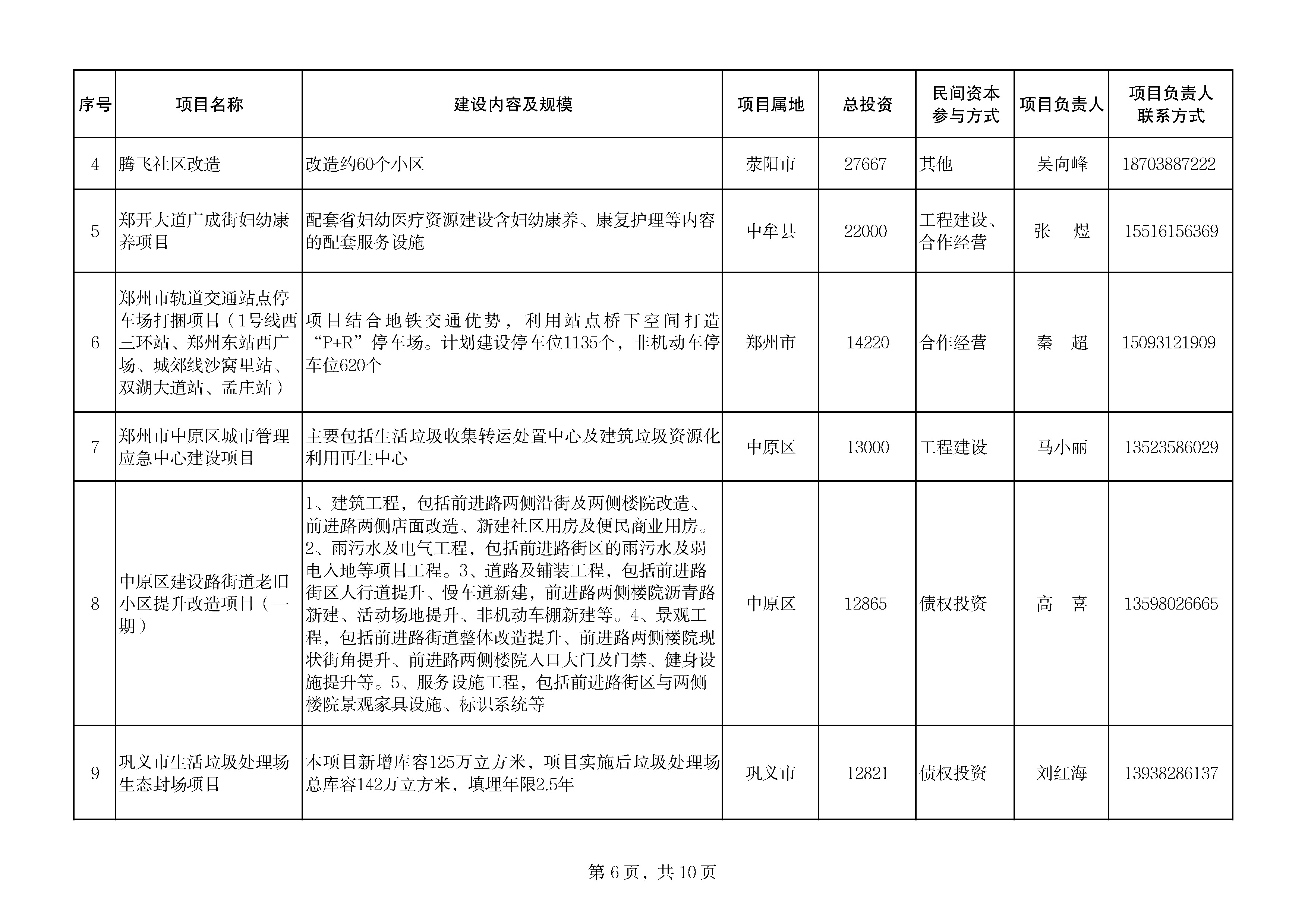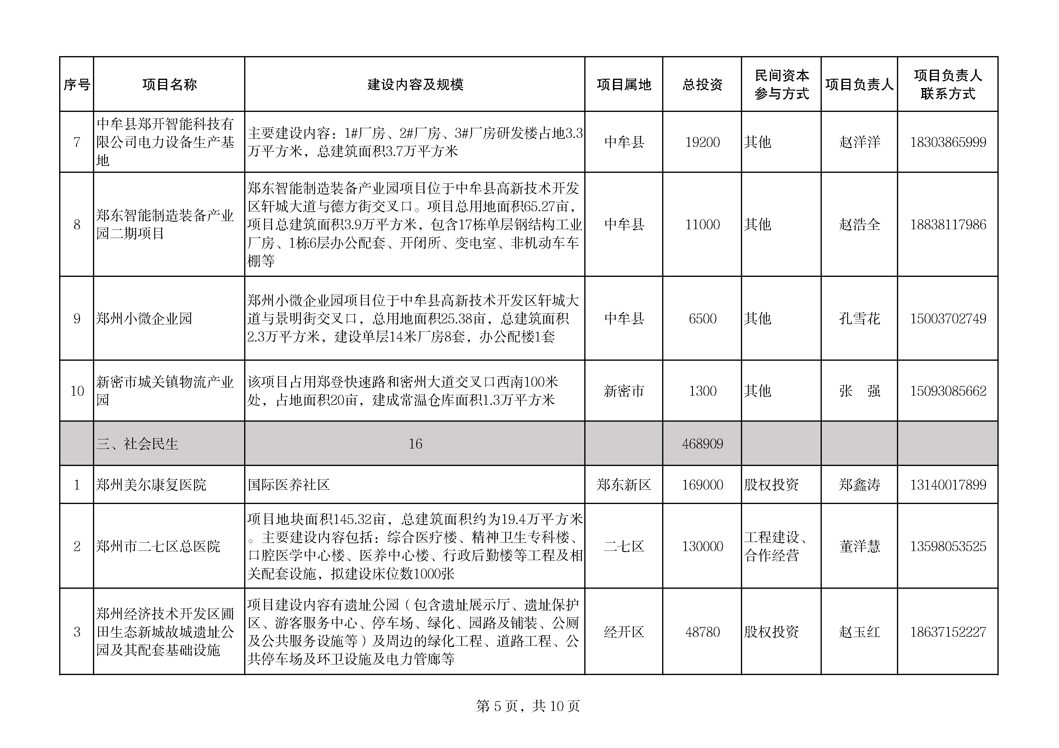 中牟縣20個(gè),總投資77.1億元;新密市16個(gè),總投資527.1億元;中原區(qū)7個(gè),總投資137.5億元;滎陽(yáng)市5個(gè),總投資117.5億元;鄭東新區(qū)5個(gè),總投資27.7億元;經(jīng)開(kāi)區(qū)3個(gè),總投資18.6億元;鞏義市2個(gè),總投資2億元;登封市1個(gè),總投資75億元;二七區(qū)1個(gè),總投資13億元;高新區(qū)1個(gè),總投資10.1億元;惠濟(jì)區(qū)1個(gè),總投資9.9億元;上街區(qū)1個(gè),總投資5億元;新鄭市1個(gè),總投資4.7億元;市本級(jí)項(xiàng)目5個(gè),總投資66.4億元。