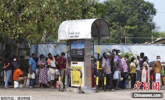2022年3月25日,斯里蘭卡首都科倫坡,人們排隊購買煤油。
