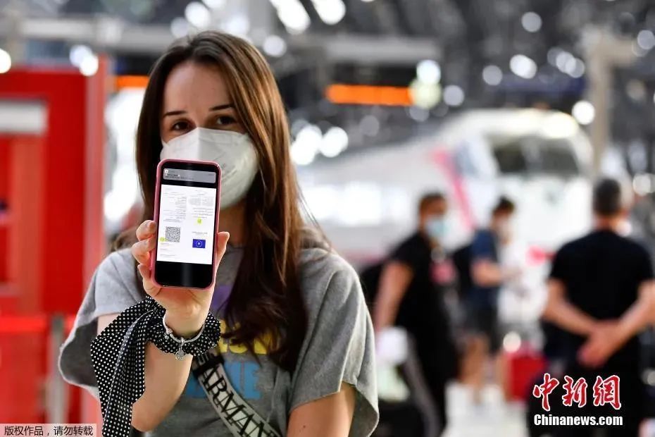 當(dāng)?shù)貢r(shí)間2021年9月1日,意大利米蘭,乘客在火車站出示的健康證明。