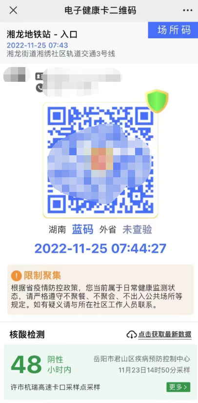 11月25日一早,有在湖南的網(wǎng)友表示“我變藍碼啦!”并附上藍色健康碼的照片,引發(fā)關(guān)注。