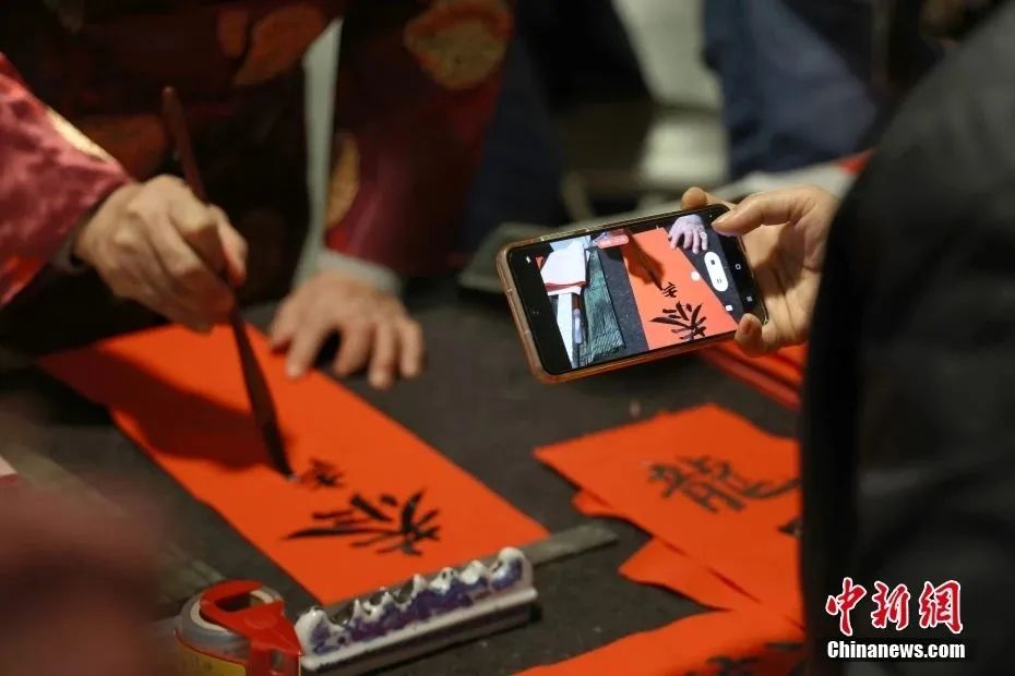 當(dāng)?shù)貢r(shí)間1月21日,兔年新春慶?;顒?dòng)在加拿大多倫多中區(qū)唐人街登場(chǎng),圖為當(dāng)?shù)貢椰F(xiàn)場(chǎng)潑墨書寫揮春。中新社記者 余瑞冬 攝