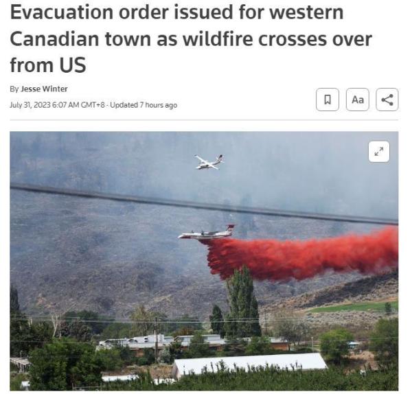據(jù)報道,加拿大不列顛哥倫比亞省野火管理部門當?shù)貢r間30日稱,這場名為“鷹崖”(Eagle Bluff)的野火距離奧索尤斯約四公里,目前在加拿大邊境一側(cè)的燃燒面積估計為885公頃,美國一側(cè)的燃燒面積大約為2000公頃。