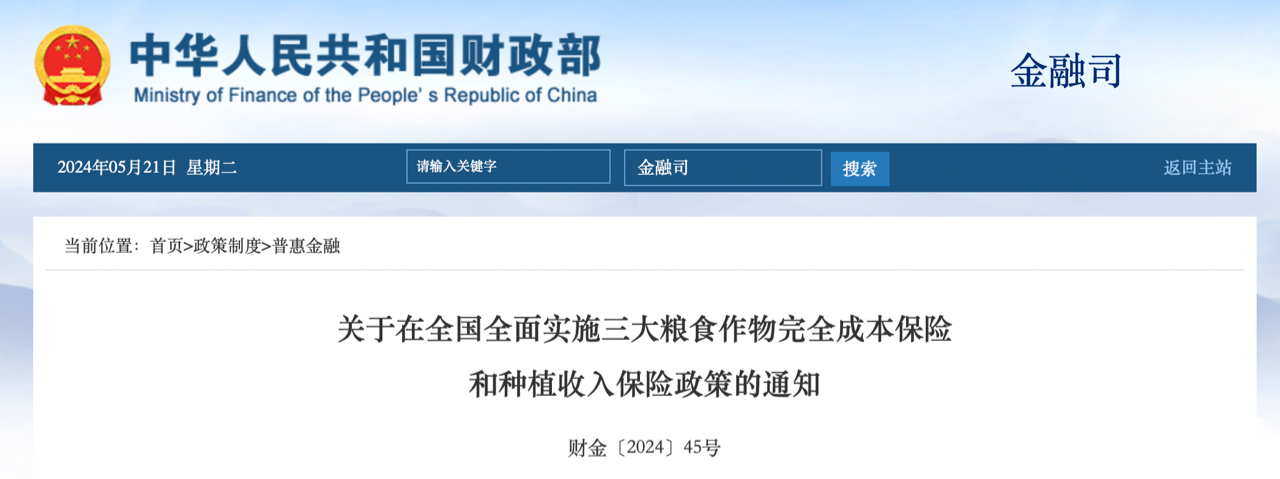 據(jù)了解,從2018年起,財(cái)政部和有關(guān)部門開始開展三大糧食作物完全成本保險(xiǎn)和種植收入保險(xiǎn)試點(diǎn),2021年在13個(gè)糧食主產(chǎn)省份產(chǎn)糧大縣正式實(shí)施,2023年進(jìn)一步擴(kuò)圍至全國(guó)所有產(chǎn)糧大縣,今年將在全國(guó)全面實(shí)施。