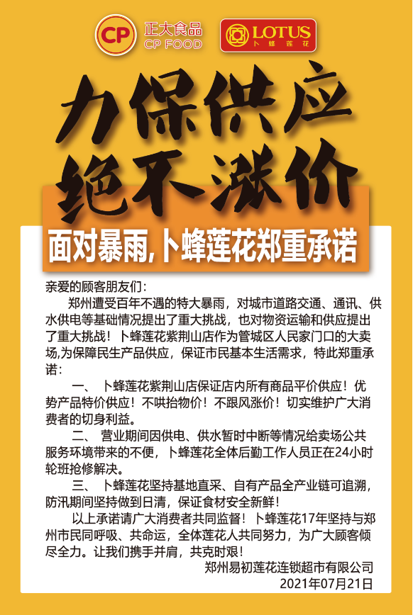 在災(zāi)難面前,正大優(yōu)鮮、蓮花超市