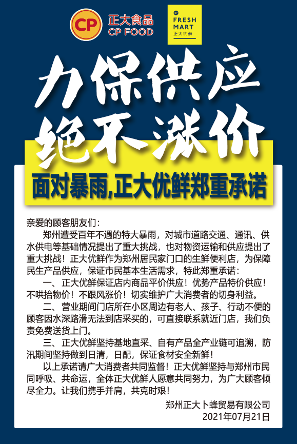 面對災(zāi)情,正大集團(tuán)零售事業(yè)線