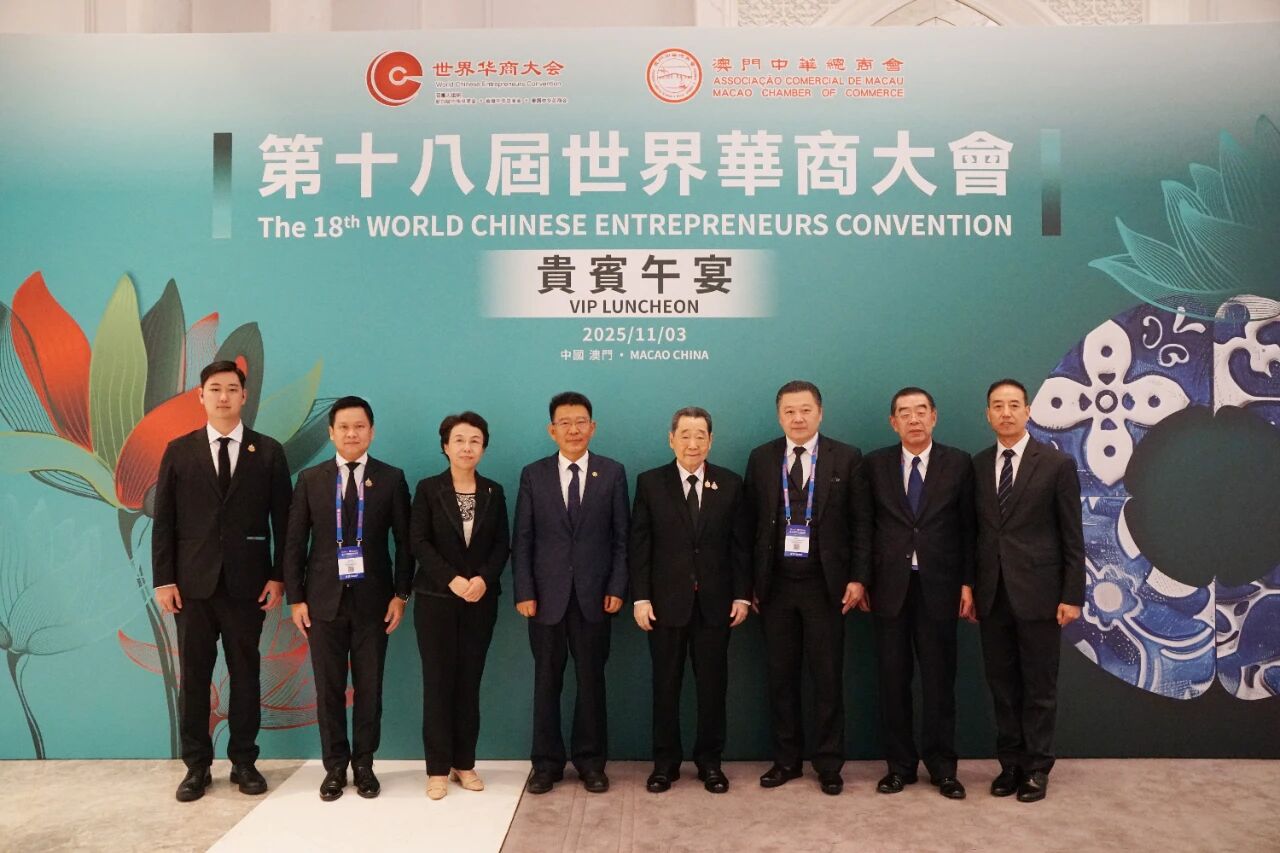 11月3日,由澳門中華總商會主辦的第十八屆世界華商大會在澳門隆重開幕。中共中央政治局常委、全國政協(xié)主席王滬寧發(fā)來賀信,向大會的召開表示熱烈祝賀,向與會的全球華商代表、海內(nèi)外僑胞及各界人士致以誠摯的問候。全國政協(xié)副主席何厚鏵、咸輝,中央和國家機關(guān)有關(guān)部門、有關(guān)團體負責(zé)同志,澳門特別行政區(qū)行政長官岑浩輝及相關(guān)政府官員,中央駐澳機構(gòu)主要負責(zé)同志,以及來自全球50多個國家和地區(qū)的華商代表、專家學(xué)者、政企界人士共4000余人參會。中國僑商聯(lián)合會會長、正大集團資深董事長謝國民率中國僑商聯(lián)合會近80位僑商組成的代表團出席大會,中國僑商聯(lián)合會常務(wù)副會長、正大集團董事長謝吉人出席大會。
