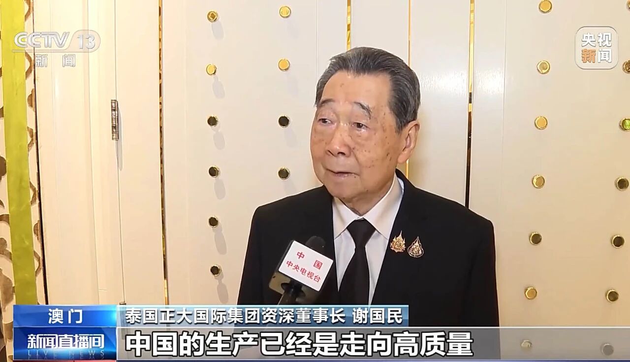 ▲CCTV記者專訪謝國民集團資深董事長。他表示,中國的生產(chǎn)正在以一日千里的速度發(fā)展著,全面邁向高質(zhì)量與AI人工智能?;诖?,我們非??春弥袊磥砀呖萍嫉陌l(fā)展前景。