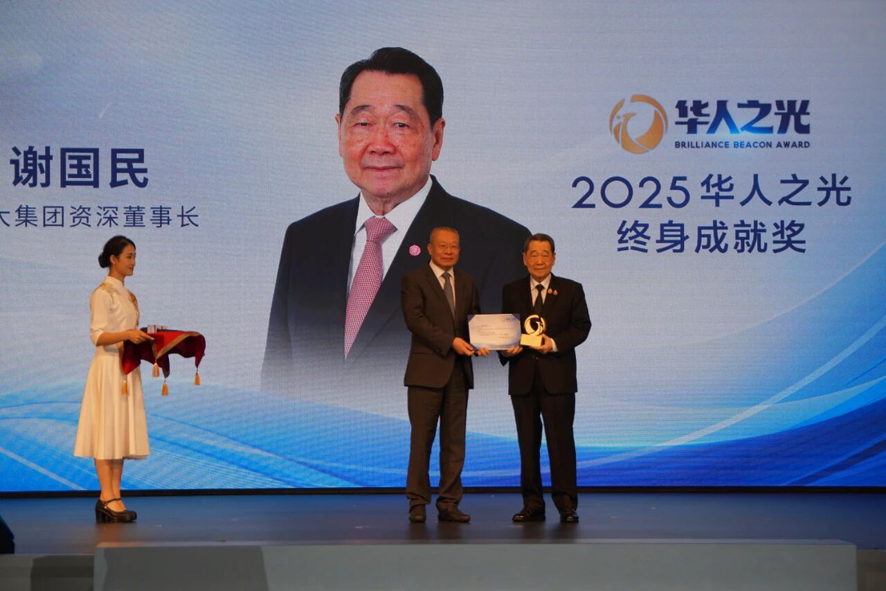 3日晚,謝國民集團資深董事長、謝吉人集團董事長參加了首屆“華人之光”年度人物頒獎盛典。本屆盛典以“華人之光,照亮世界”為主題,旨在禮贊在實業(yè)報國、科技創(chuàng)新、文化傳播、全球治理等領(lǐng)域作出卓越貢獻的杰出華人代表,謝國民集團資深董事長獲頒2025華人之光終身成就獎,鳳凰衛(wèi)視總編輯、執(zhí)行董事、鳳凰網(wǎng)董事長兼CEO孫玉勝為其頒獎。